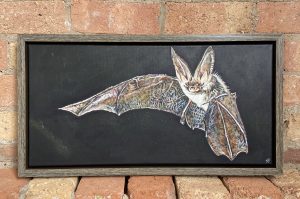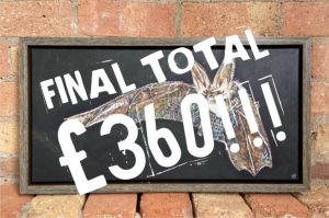 Here is my framed Brown Long-Eared Bat painting that I have donated to The Derbyshire Bat Group. The frame gives a floating effect & measures 35cm x 65cm. The colours in it coordinate with my painting perfectly. I’m so pleased with the result Brown long-eared bats are one of the most common bats in the…