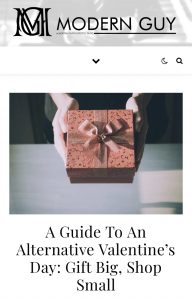 Check out this great gift guide I’m part of, for Valentine’s gift ideas. Click on the link – https://modernguy.co.uk/alternative-valentines-gifts/