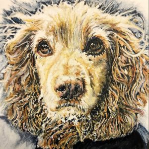 A Retired Police dog – Spaniel 12 x 12 inch canvas board fixed to mount board