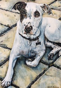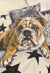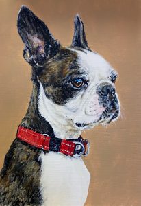 Boston Terrier A4 Strathmore textured paper for acrylics in mount