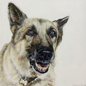 German Shepherd 12 x 12 inch canvas board fixed to mount board